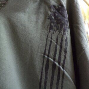 This Hoodie has been worn. The drawstring from hood/neck is missing. The neckline has been cut for added neck and chin room. The price reflects the cut in the material. Please check out photographs as they are part of this listing's description.