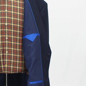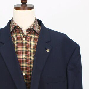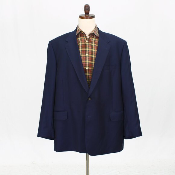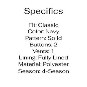 GS 64L Navy Sport Coat Blazer Jacket Solid 2-Button Polyester Y501