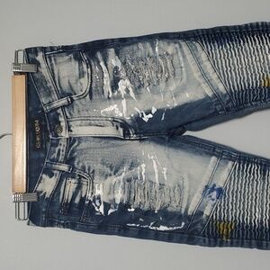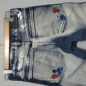GS-115 Denim Jeans Boys Size 12 Blue Moto Paint Dye Splatter Artzy Art