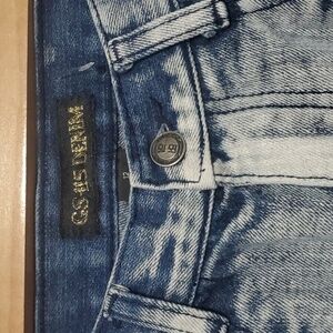 GS-115 Denim Jeans Boys Size 12 Blue Moto textured Paint Dye GS115 GS 115 youth yellow white red colorful paint top layer ripped rips holes bottom layer intact
