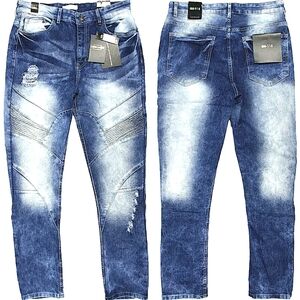 GS-115 Distressed Light Acid Wash Slim Fit Jeans