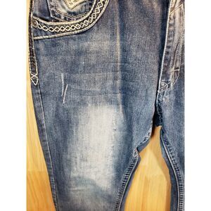 GS115 Gramercy SF Mens Jeans 36x31 Light Wash Gray Silver Y2K Distressed Style