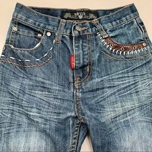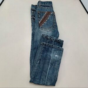 GS115 Jeans Kids 10 Straight Leg Leather Accent Pockets Girl