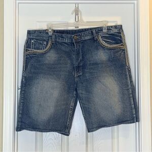GS115 Mens Jean Shorts Size 42 Bruce Slim Fit Blue Denim Distressed