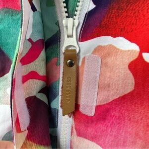 Stand out on the slopes with this eye-catching GSOU SNOW women’s insulated snow jacket in size XS. Features a bold multicolor vibrant camo print, removable hood, and adjustable hem toggles. Designed for cold weather and performance, it’s waterproof (10K rating), windproof, and fully lined with a bright aqua interior for warmth and visibility. Includes underarm zip vents for breathability, multiple zip pockets for storage, and a snow skirt for extra protection. Regular fit. In pristine condition with no signs of wear—perfect for winter sports, après-ski, or adding color to a cold day.