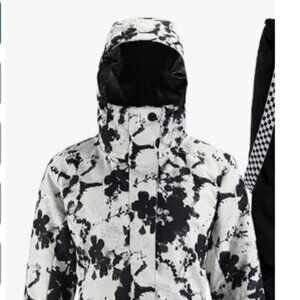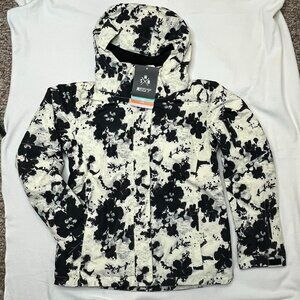 GSOU SNOW Women's Size Large Ski/Snowboarding Jacket, Black/White Flower Print, NEW WITH TAGS