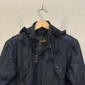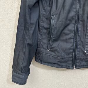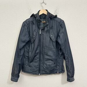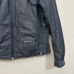 G-STAR RAW Moto Jacket Mens Sz L Black Denim Full Zip Hooded Tactical Grunge M3788
