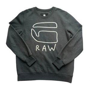 G-STAR RAW Okisi Embroidered Crew Neck Sweatshirt in Black Heather (Grey) Sz XL