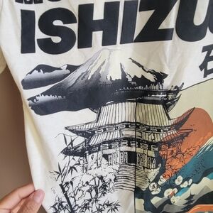 Explore the beauty of Mount Ishizuchi with this stylish cream graphic t-shirt. Perfect for casual outings