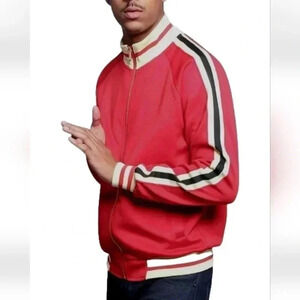 G-STYLE USA Men's Red Side Stripe Gold Zipper Jacket