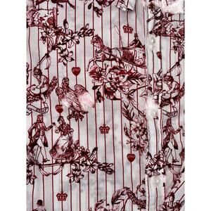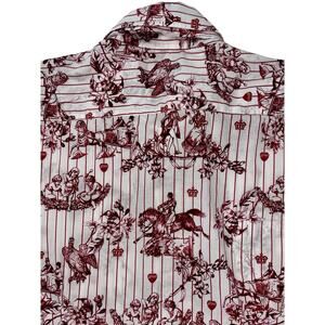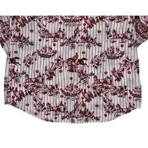 GSUS Industries Women's Cotton Blouse XL White W/ Red Printed Images Tie Accent