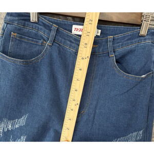 GSUWOO SO REAL Layered Jeans Womens Sz S Blue Distressed Stretch
