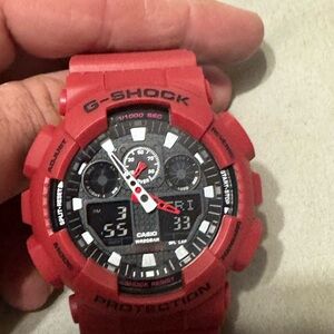 Bold red band with durable design. Silver clasp adds a sleek touch. Ideal for active wear.