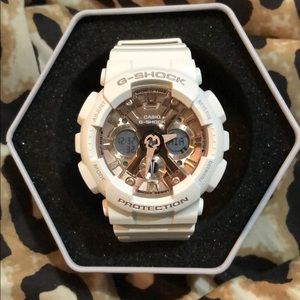 White and Gold, never worn only unboxed! Comes with warrant card and user’s guide. Unsure if warranty it still available, watch was bought over a year ago! Digital time, adjustable world clock based on your location OBO