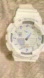G Shock digital watch works well . The minute hand is lose but the watch works well I posted a video .Stylish G-Shock watch with a white band and purple accents. Durable and modern design. Great condition has a light scratch on back.