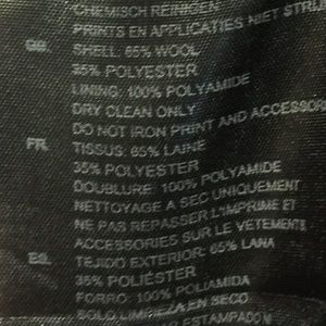 Great jacket made out of 65% wool 35% polyester. Worn only a few times and it's in really good condition.