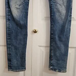 Excellent condition. Men's slim fit jeans that are narrow from thigh to hem. Multiple pockets on front with hidden snap closure pockets on seams. Large multi-layer back pockets. Light amount of stretch.