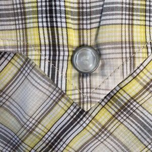 Condition: this nice plaid pear snap shirt is in vguc with signs of wear. There is a raw patch on the bottom where perhaps a label was removed but integrity of fabric remains