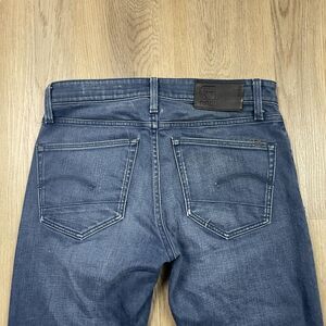G-Star RAW 3301 Slim Jeans Mens 32x30 Blue Distressed Repair Italian Fabric