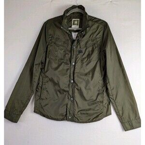 G-Star RAW jacket, cargo jacket, military style coat, olive green jacket, utility jacket, mens medium outerwear, lightweight field coat, urban streetwear
