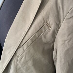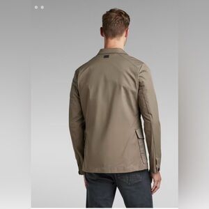 This unisex blazer offers a slim lapel collar with a stitching through the edge. At the chest, a welt pocket is placed in an angled position. Also at the waist pockets are created. Above one of these, a G-Star RAW print is set. The inside of this blazer is clean finished with a half lining. The additional stitchwork detailing completes this tailored piece. Unisex sizing runs as men's sizing.