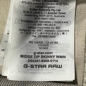 G-Star RAW Midge Zip Skinny Jeans NWT ~ with Back Zipper Pockets - 32W …