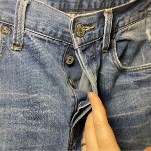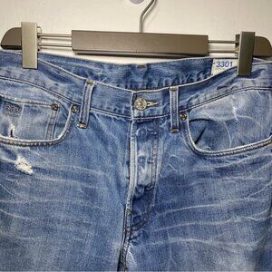 G-Star Raw 3301 Men’s Blue Distressed Button Fly Straight Leg Jeans Size 33X32