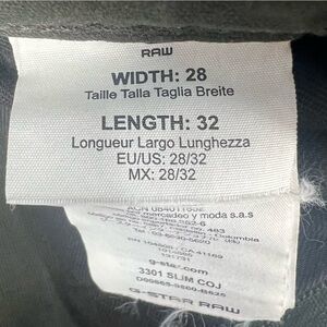 G-Star Raw Black 3301 Button Fly Slim Jeans Size 28 x 32 Men's