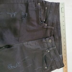 G-Star Raw Denim Black Distressed Skinny Leg Jeans Size 27 x 32. 5 pocket design. In excellent condition. Legs distressed. Measurements in photos. Straight leg. Tapered leg.