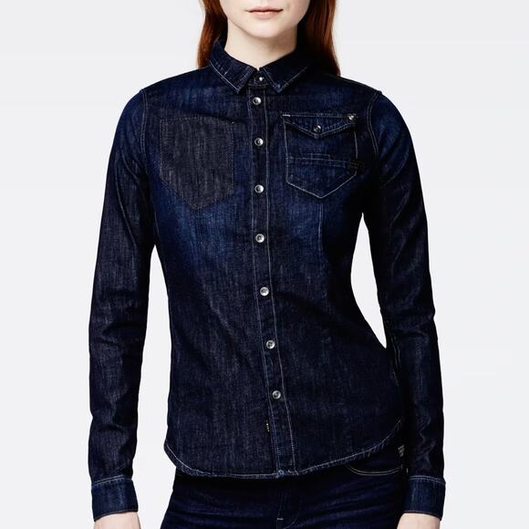 G-Star Raw Hunter 5620 Straight Shirt Lightweight Dark Denim Button Down Size S