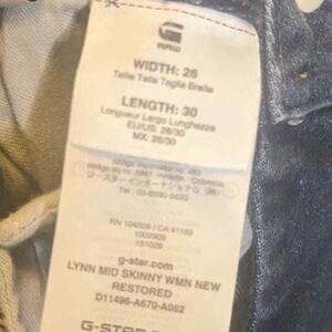 G-Star Raw Lynn Mid Skinny Distressed Jeans sz 26W/30L, in excellent condition