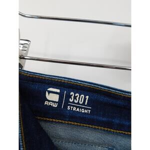 G-Star Raw Men's 3301 Blue Button Fly Slim Straight Denim Jeans Size 30x28