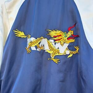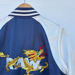 Inspired by archive tour jackets, this slim bomber is fitted out with a large, embroidered dragon and light-catching sateen. For extra carrying capacity, it features an additional sleeve pocket. Rich ribbings trim the neck, cuffs and hem. On the inside, it's fully lined.