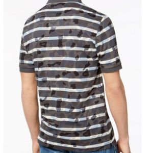 G-Star Raw Men's Swando Camo Polo. Short sleeve polo shirt in G-Star camouflage. Pattern colors are variations of gray and blue. Fabric is 100% cotton. Grey collar and banding on sleeves(see detail). Black buttons/extra button sewn to interior tag. Sides have small slits at bottom of hem. Easily foldable and packable! Very good condition!