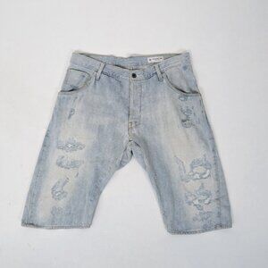 GStar Raw Restored Denim Shorts Light Wash Blue Mid Rise Fitted