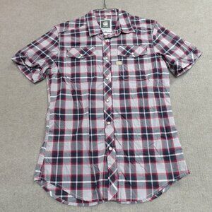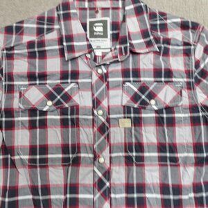 G-Star Shirt Large Gray Red Snap Front Western Landon