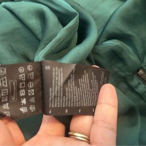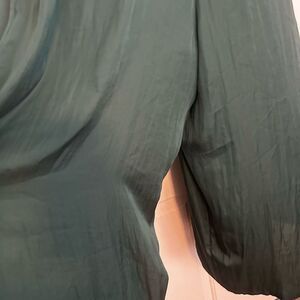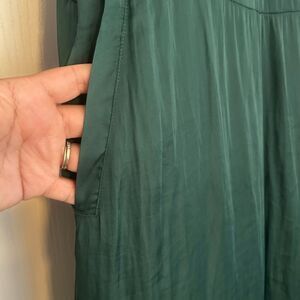 It’s made with a satin-like fabric, giving it a smooth and slightly shiny finish. The wide leg and cropped (7/8) length, combined with the deep V-neck and adjustable black straps, give it a relaxed yet chic look.