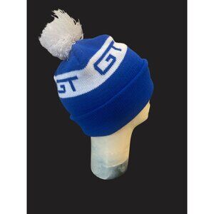 Keep warm with this stylish GT beanie. This blue and white hat features a playful pom-pom, blending fashion and functionality for colder days.