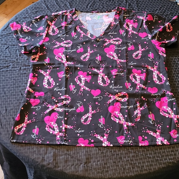 Breast Cancer Awareness scrub top with lots of loving hearts to show your support for the cure!!!