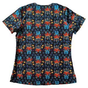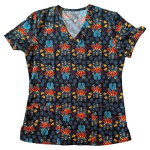 GT Performnce Black Printed V Neck Scrubs Top, Small