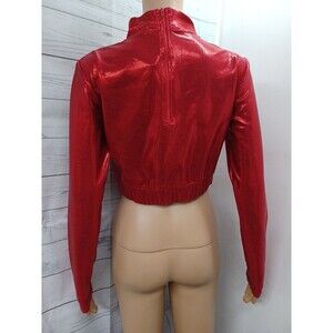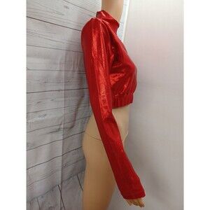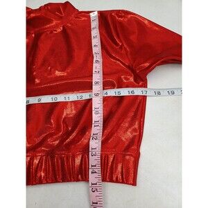 GTM Sportswear Mock Neck Long Sleeve Crop Top Red Shinny Youth L NWT