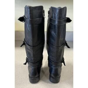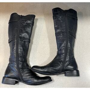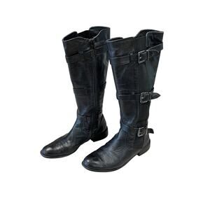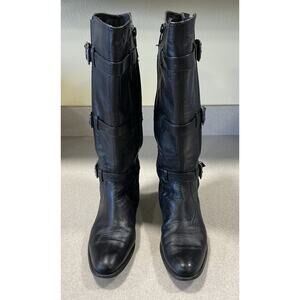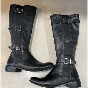 GTO Italia Black Leather Tall Boots Women’s Size 7.5 Zipper And Buckle Sides EUC
