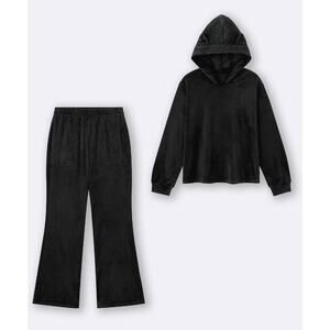 NWT GU (Uniqlo sister brand) Meringue Feel Cat Ear Hoodie and Pants Set, Dark Gray / Black