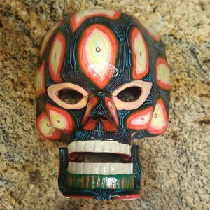 GUATEMALAN MEXICAN MOVABLE SKULL MASK TRANSFORMATION WOODEN FOLK ART HAND CARVED.
