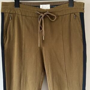 GUC ANTHROPOLOGIE ESSENTIAL SLIM PANT OLIVE GREEN WITH BLACK TUXEDO STRIPES SZ 8