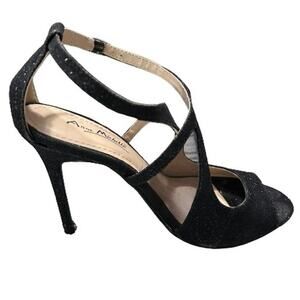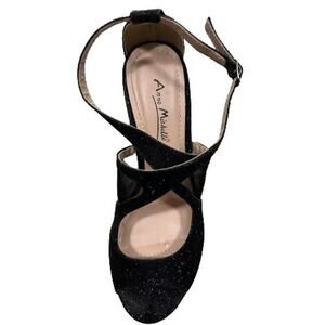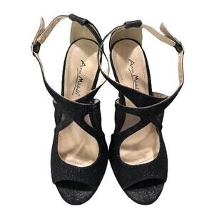 GUC Anne Michelle Black Shimmer Open Toe Dress Pumps. Size 6.5. These shoes features a Leatherette Upper, Rubber Outsole, Textile Side Panels, Open Toe Front, Stiletto Heel, and an Adjustable Ankle Strap for a Secure Fit. Preloved in very good condition. *First photo is a stock photo*