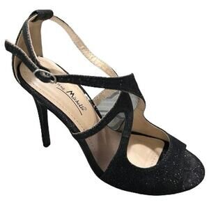 GUC Anne Michelle Black Shimmer Open Toe Dress Pumps. Size 6.5