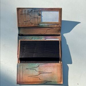 Unique abstract design with vibrant colors. Hand-painted artistry. Purchased in the Bahamas in July 2010. Light wear on exterior. Dimensions 7.25” x 4”. From a smoke free and dog friendly home.