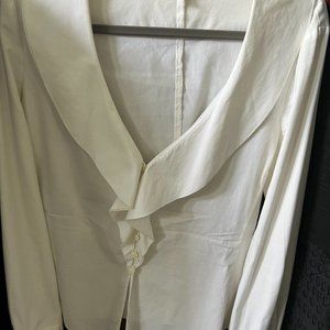Stunning cream blouse from Armani Collection! Has a plunge neckline and absolutely adorable button up detailing at the bottom. Women's size 12. Please comment or DM me with any questions. I am open to offers, but no low-ball offers, please!