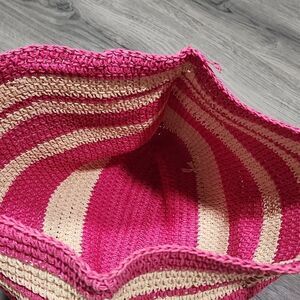 GUC Barbie Pink & Natural Straw XL Tote with double thin leather straps, drop is 9". No inside pickets, open and great for pool, travel and beach. This bag holds alot! no flaws found.